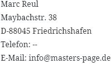 Diese Website wurde mit größtmöglicher Sorgfalt zusammengestellt. Trotzdem kann keine Gewähr für die Fehlerfreiheit und Genauigkeit der enthaltenen Informationen übernommen werden. Deshalb wird Ihnen diese Website und das gesamte auf ihr enthaltene Material, sowie alle Informationen in der gegebenen Form und ohne eine ausdrückliche oder implizite Haftung seitens des oben genannten Anbieters zur Verfügung gestellt. Des Weiteren behalten wir uns für diese Webseite das Recht vor, Änderungen oder Ergänzungen der bereitgestellten Informationen vorzunehmen. Zudem wird jegliche Haftung für Schäden, die direkt oder indirekt aus der Benutzung dieser Website entstehen, ausgeschlossen.